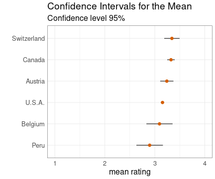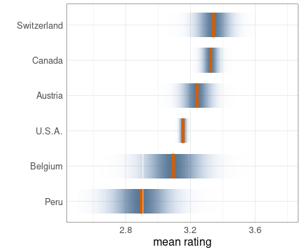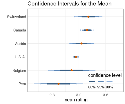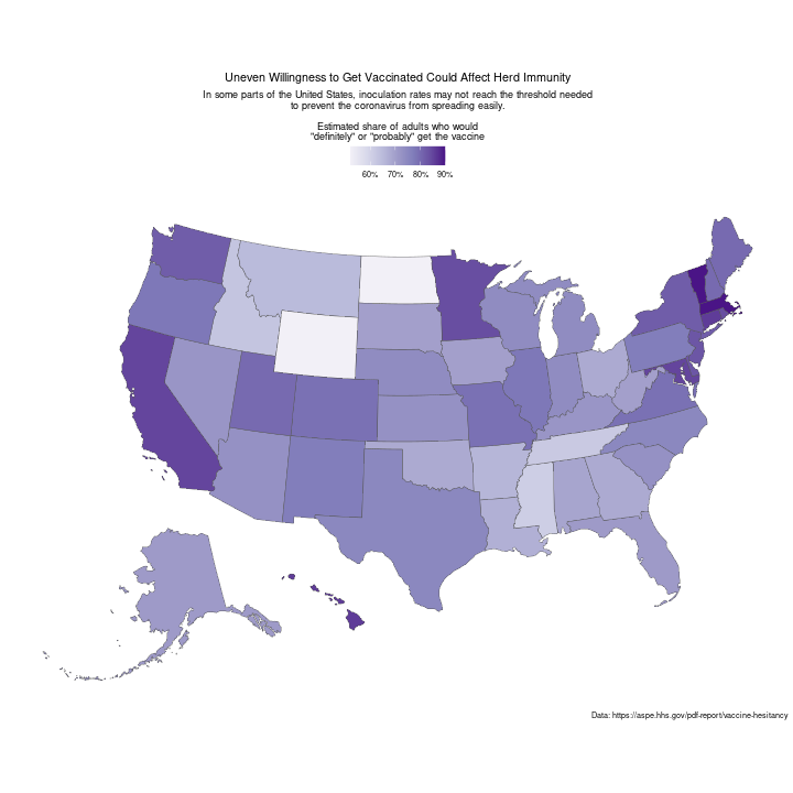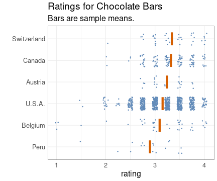 class: center, middle, title-slide .title[ # Final Notes ] .author[ ### Luke Tierney ] .institute[ ### University of Iowa ] .date[ ### 2025-05-08 ] --- <link rel="stylesheet" href="stat4580.css" type="text/css" /> <style type="text/css"> .remark-code { font-size: 85%; } </style> ## Some Other Topics Some topics we did not have time to look at: -- * Working with models ([Chapter 6 in Healy, 2018](https://socviz.co/modeling.html); [Tidy Modeling with R](https://www.tmwr.org/)). -- * [Visualizing missing values](http://naniar.njtierney.com/articles/naniar-visualisation.html). -- * Visualizing uncertainty ([Chapter 16 of Wilke, 2019](https://clauswilke.com/dataviz/visualizing-uncertainty.html) and [below](#visualizing-uncertainty)) -- * Plot annotation, plot ensembles, and dashboards. ([Part II of Wilke, 2019](https://clauswilke.com/dataviz/proportional-ink.html); [Chapter 5 of Healy, 2018](https://socviz.co/workgeoms.html); [below](#plot-annotation-plot-ensembles-and-dashboards)). -- * Data Science Ethics ([below](#data-science-ethics)). --- layout: true ## Visualizing Uncertainty: Hurricanes --- name: visualizing-uncertainty All estimates from data are associated with some degree of uncertainty. -- Effectively communicating that uncertainty in visualizations is challenging and an active area of [research](http://space.ucmerced.edu/chapter). -- The _cone of uncertainty_: (From Cairo (2019); images from a [blog post](https://web.archive.org/web/20231202192241/http://www.thefunctionalart.com/2020/01/all-graphics-from-how-charts-lie-freely.html) by the author.) <!-- https://www.dropbox.com/sh/d1kb0jdrhkb43j9/AADTBfRvAh-mxmSxBRNZpLJja/5.CHAPTER5?dl=0&preview=PDF10.Tropicalstorm.pdf&subfolder_nav_tracking=1 --> .pull-left[ <img src="../img/PDF10.Tropicalstorm.png" width="450" /> ] -- .pull-right[ The [NHC forecast cone](https://www.nhc.noaa.gov/aboutcone.shtml) is designed so that two-thirds of historical official forecast errors over a 5-year sample fall within the cone for a particular time point.. ] --- When published in the media these visualizations are routinely misinterpreted something like this: <!-- https://www.dropbox.com/sh/d1kb0jdrhkb43j9/AADTBfRvAh-mxmSxBRNZpLJja/5.CHAPTER5?dl=0&preview=PDF11.StormWRONGSize.pdf&subfolder_nav_tracking=1 --> .pull-left.width-65[ <img src="../img/PDF11.StormWRONGSize.png" width="573" /> ] --- A more effective representation might be something like this, showing an _ensemble_ of possible tracks: <!-- https://www.dropbox.com/sh/d1kb0jdrhkb43j9/AADTBfRvAh-mxmSxBRNZpLJja/5.CHAPTER5?dl=0&preview=PDF13.StormLines.pdf&subfolder_nav_tracking=1 --> .pull-left.width-65[ <img src="../img/PDF13.StormLines.png" width="573" /> ] -- .pull-right.width-30[ An animated version may be more effective, if the presentation medium permits. {{content}} ] -- Developing better visualizations for hurricane forecasting, especially targeting the public, is an active area of research. --- layout: true ## Visualizing Uncertainty: Chocolate Bars --- .pull-left[ [Expert ratings](http://flavorsofcacao.com), on a scale from 0 to 5, for chocolate bars manufactured in several countries: ] .pull-right[ <!-- --> ] --- .pull-left[ The standard deviations of the data distributions are comparable, but the lengths of confidence intervals for the mean vary because of the different sample sizes: ] .pull-right[ <!-- --> ] --- .pull-left[ The same plot with a reduced horizontal range: ] .pull-right[ <!-- --> ] --- .pull-left[ A more elaborate display with confidence intervals at several levels: ] .pull-right[ <!-- --> ] --- .pull-left[ Confidence densities, or confidence distributions, as proposed in > Adrian W. Bowman. Graphics for Uncertainty. J. R. Statist. Soc. A > 182:1-16, 2018. [Link](https://rss.onlinelibrary.wiley.com/doi/full/10.1111/rssa.12379) ] .pull-right[ <!-- --> ] --- One drawback of all of these methods: -- > The least precise measurement draws the most attention. -- These examples from Wilke's book use the [`ungeviz` package](https://github.com/wilkelab/ungeviz) available on GitHub. -- Another package providing some tools for uncertainty visualization is [`ggdist` package](https://mjskay.github.io/ggdist/). --- layout: true ## Visualizing Uncertainty: Old Cars --- Using the very old `mtcars` data set to illustrate estimating a smooth relationship: -- .pull-left[ <!-- --> ] -- .pull-right[ A default `geom_smooth` shows an estimate along with a point-wise confidence band. {{content}} ] -- This may not give the best sense of the joint uncertainty: if the curve is higher on some places it may need to be lower in others. --- Showing an _ensemble_ of curves that all are plausible can be a better choice. -- .pull-left[ <!-- --> ] -- .pull-right[ This approach was shown earlier for visualizing possible hurricane paths. {{content}} ] -- This ensemble is generated using a _case-based bootstrap_. {{content}} -- These plots are called _ensemble plots_ (also spaghetti plots, for obvious reasons). --- If animation is available, an alternative is to show the curves one at a time in an animation. -- .pull-left[ <!-- --> ] -- .pull-right[ Again, a bootstrap is used to produce the estimates. {{content}} ] -- This is an example of a _hypothetical outcomes plot_, or _HOP_, as introduced in > Hullman, Jessica, Paul Resnick, and Eytan Adar. "Hypothetical > outcome plots outperform error bars and violin plots for inferences > about reliability of variable ordering." PLOS ONE 10, no. 11 (2015). --- layout: true ## Data Quality and Integrity --- A visualization can accurately reflect data but still be misleading if the data are faulty. -- A [NY Times article](https://www.nytimes.com/2021/05/03/health/covid-herd-immunity-vaccine.html) from May 2021 shows a choropleth map of the estimated share of adults who would "definitely" or "probably" get the COVID-19 vaccine. -- .pull-left[ Cutoffs: 49 60 65 70 75 80 91 % <img src="../img/map-1050.png" width="500" /> ] -- .pull-right[ The map may accurately reflect 