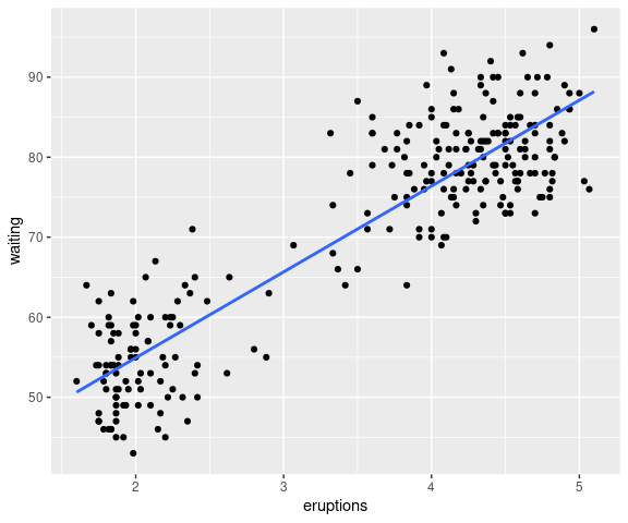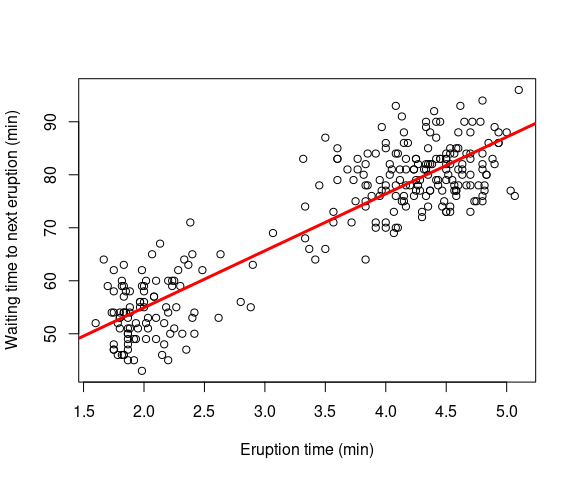 fit <- lm(waiting ~ eruptions, data = faithful)