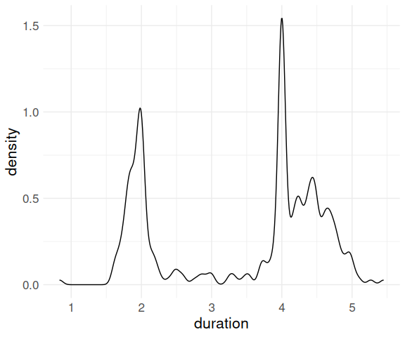 ggplot(faithful, aes(x = eruptions)) + geom_density(---)