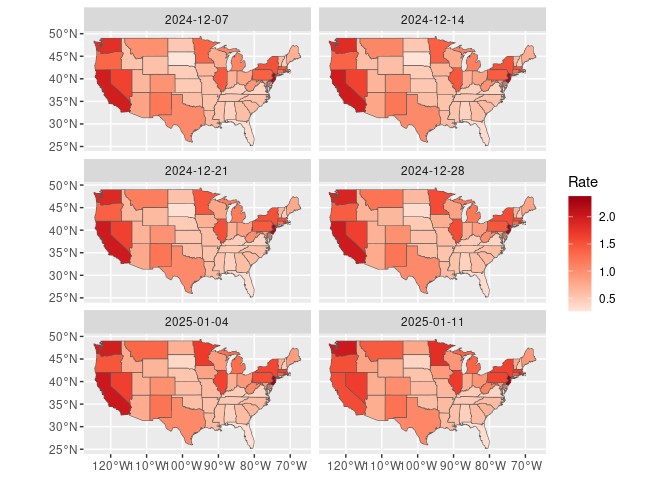 Choropleth maps for the last 6 weeks: