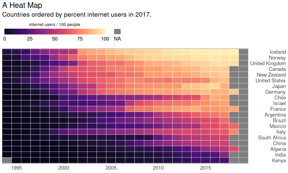 "Countries ordered by percent internet users in 2017.") +