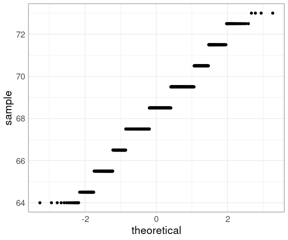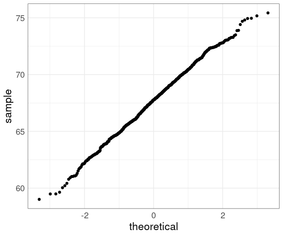 geom_qq(aes(sample = fheight)) +