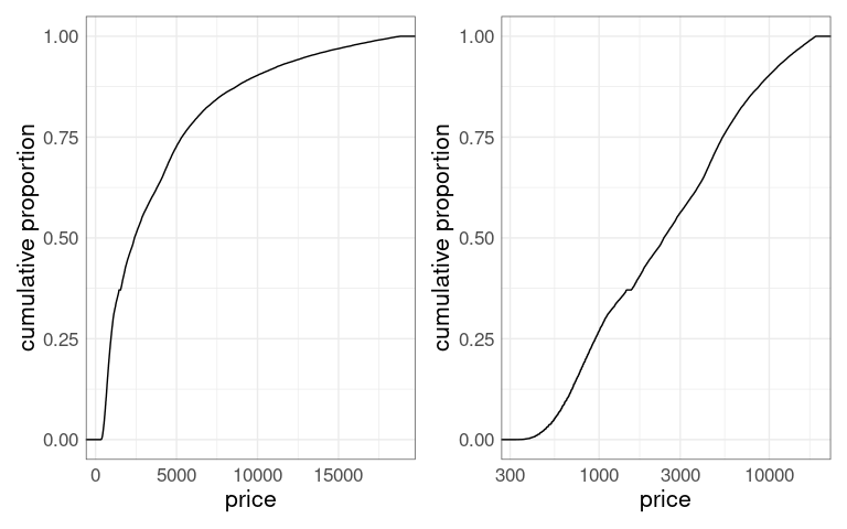 stat_ecdf(aes(x = price)) +