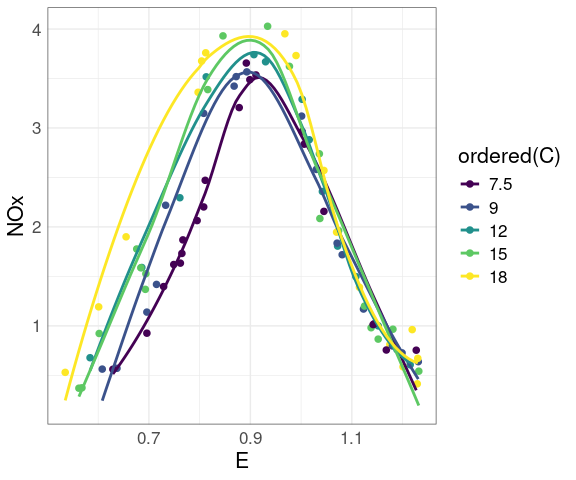 For the ethanol data there are only a small number of distinct levels for C.