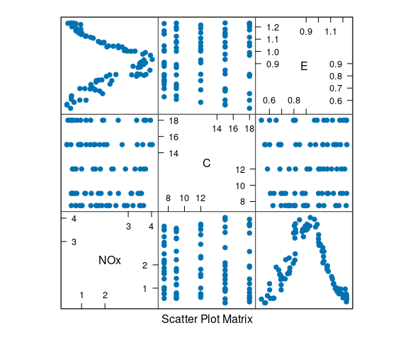 splom(ethanol, ced = 0.5, pch = 19)