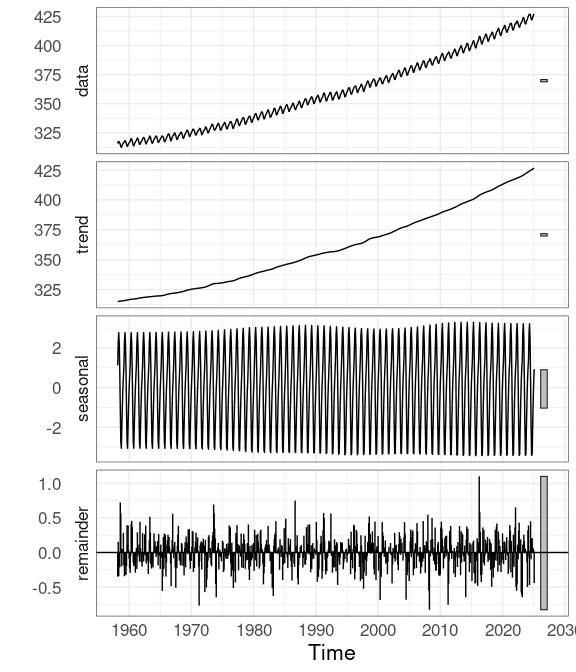 ##  Time-Series [1:468] from 1959 to 1998: 315 316 316 318 318 ...