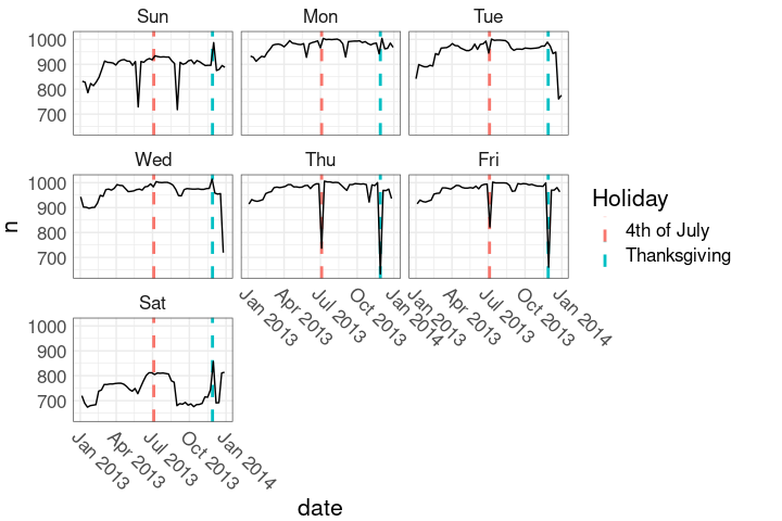 Holidays in the faceted plot: