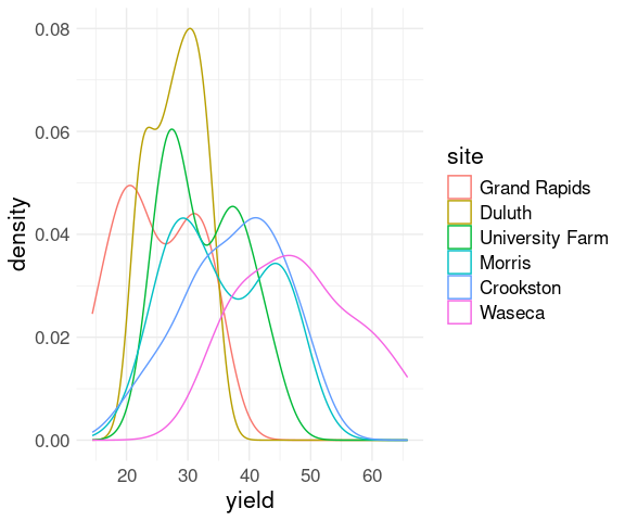 ggplot(mutate(barley, year = reorder(year, -yield))) +