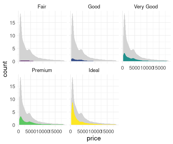 Density ridges can also show quantiles, but the details of how to request this are different. Consider this code: