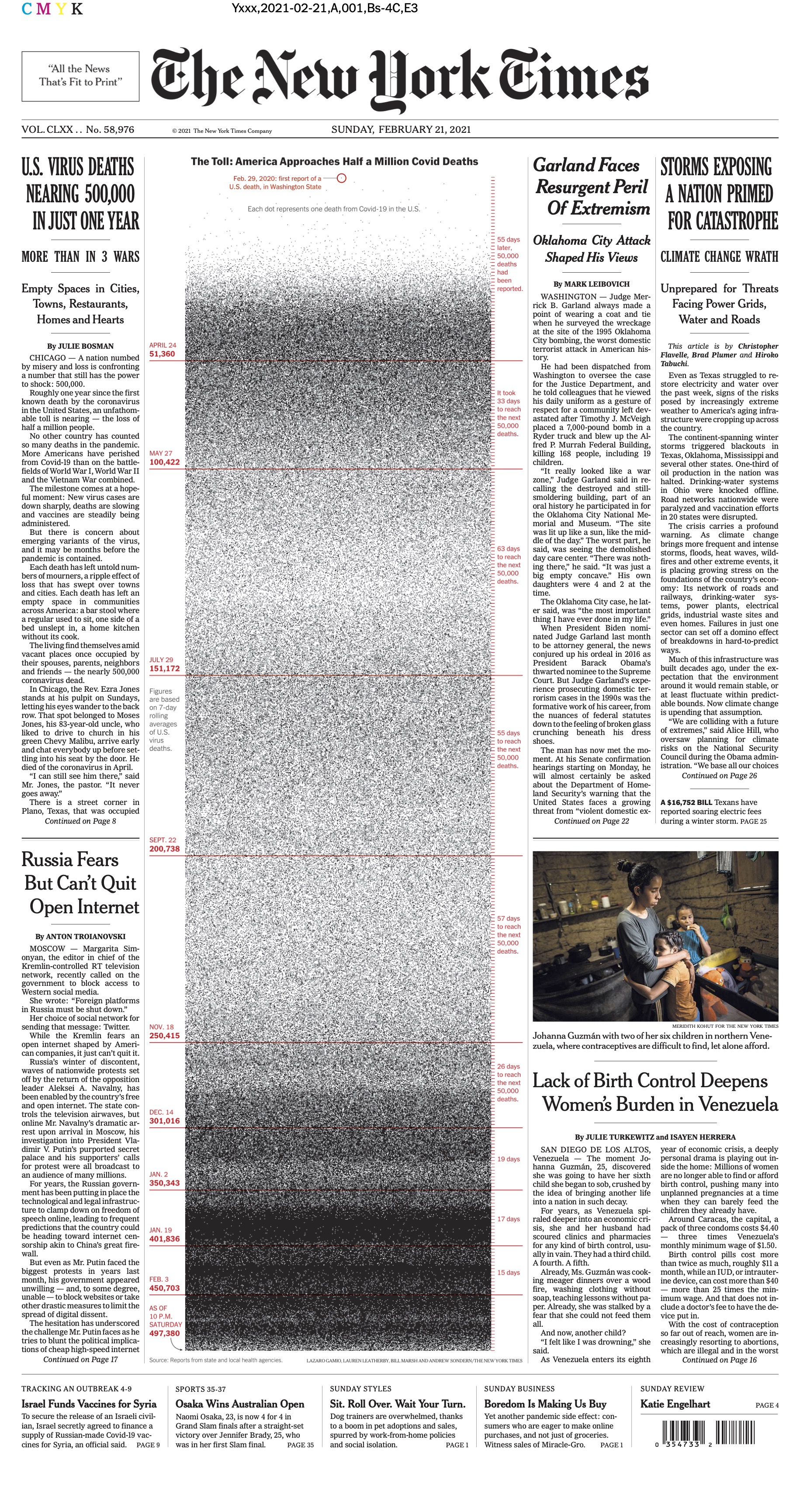 A plot along these lines was used on the New York Times front page for February 21, 2021 .